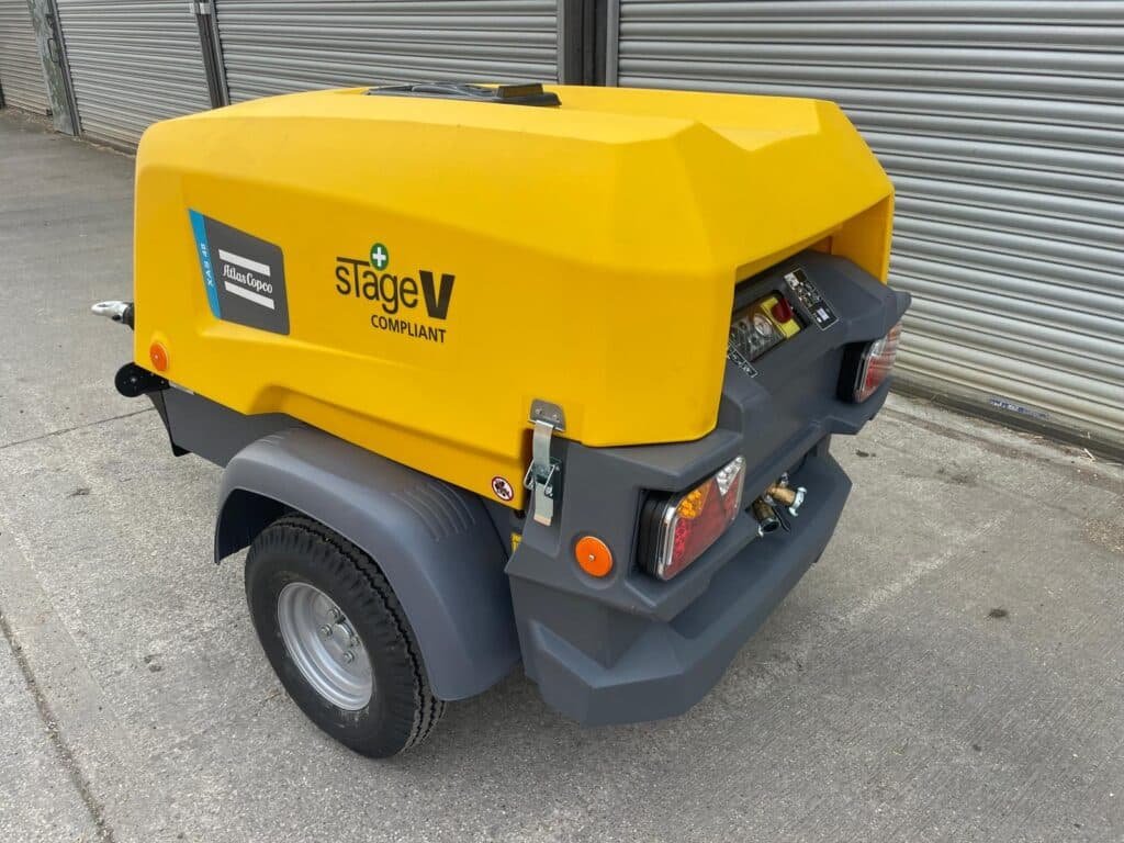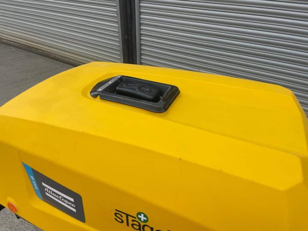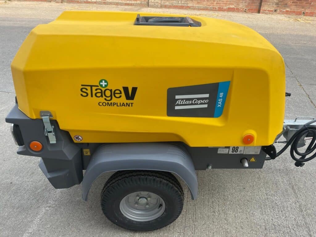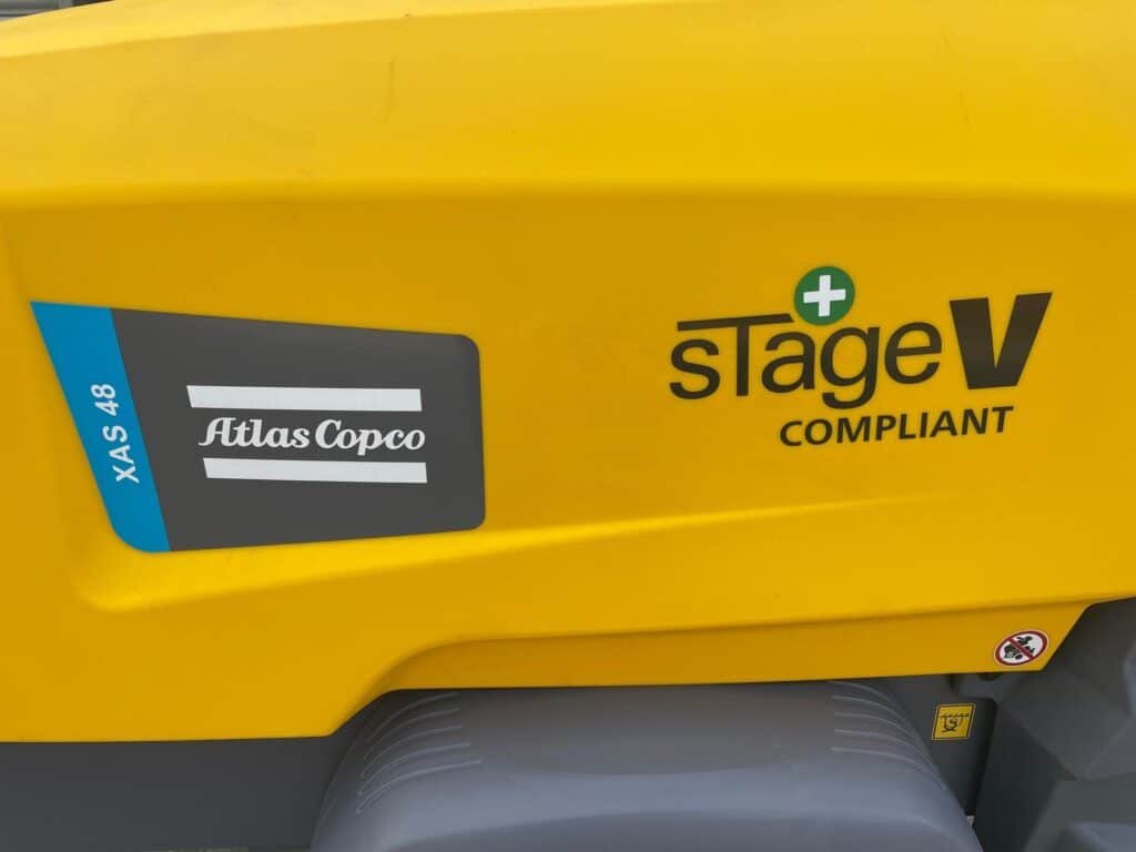 Atlas Copco XAS48 Twin Tool Compressor. The perfect combination of signature Atlas Copco compressor elements and best-in-class Stage V diesel engines. Plus shock-resistant HardHat® canopy for longer lifetime and higher residual value. Best suited for abrasive blasting, blowing and powering pneumatic tools. Working pressure 7-12 bar (100-175 psi). Free air delivery 2-5 m³/min (70-175 cfm).
